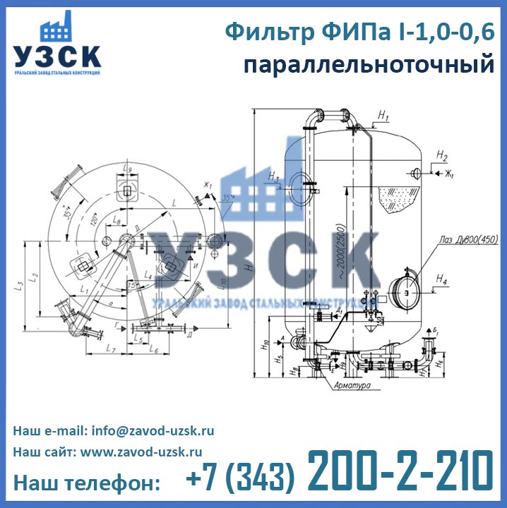 Для того, чтобы купить фильтр ФИПа1 1,0-0,6 в Оше выгодно, необходимо обратиться непосредственно к производителю данного оборудования. Ведущий производитель фильтров для смягчения воды – Уральский Завод Стальных Конструкций – предлагает фильтры натрий-катионитные параллельноточные по низким ценам. Оформить заказ на изготовление фильтра ФИПаI 1,0-0,6 Вы можете по электронной почте, указанной в разделе «Контакты» или при помощи формы заказа, расположенной ниже.